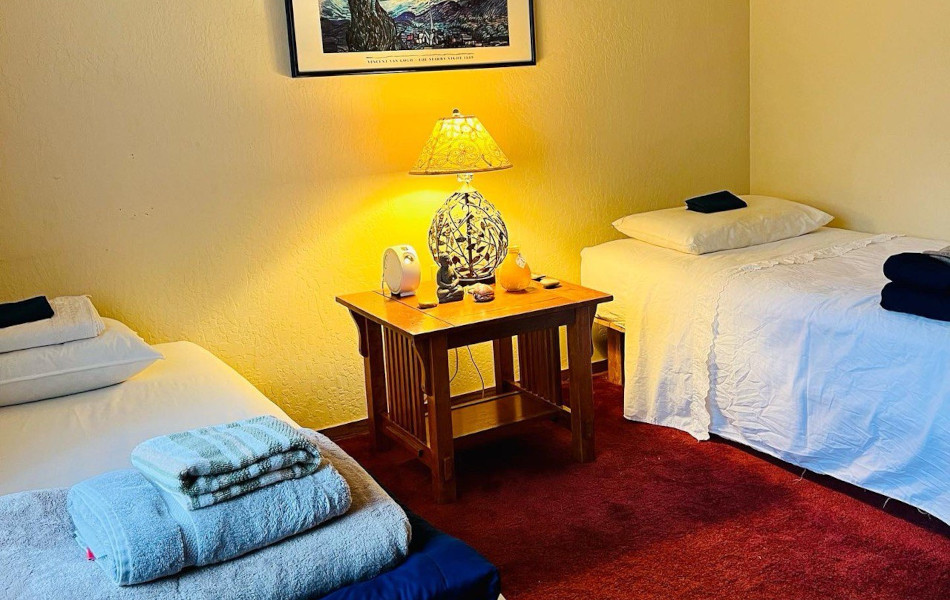 The property includes 20 acres of oak tree forest, one organic vegetable garden, several fruit trees, a creek and 2 buildings. The main building (Ashram) is where the majority of activities are held, and the other building (barn) is used for larger gatherings. Ananda Dhiira is located on a private road.